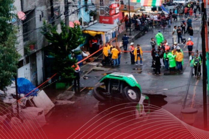 De acuerdo con la Secretaría de Gestión Integral del Agua (SEGIAGUA), el hundimiento mide 6.30 metros de ancho, 12 de largo y 8 de profundidad. La dependencia explicó que el origen se relaciona con una afectación en un tramo del colector de 2.44 metros de diámetro.