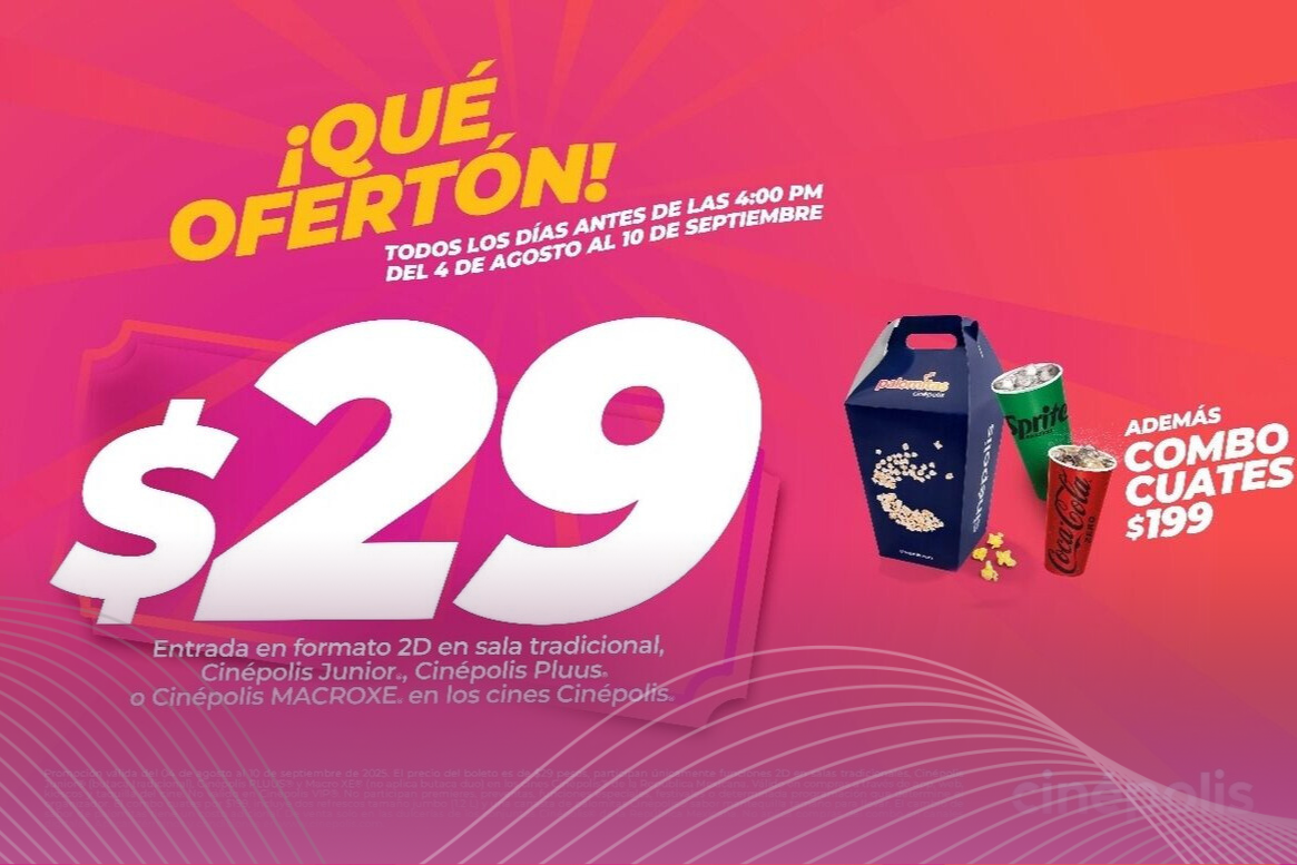 Cinépolis anuncia la promoción ¡Qué ofertón!, una campaña pensada para incentivar la asistencia al cine en temporada vacacional. Entre el 4 de agosto y el 10 de septiembre de 2025, los asistentes podrán acceder a funciones con boletos de $29 pesos mexicanos en horarios matiné, además de adquirir un paquete de alimentos a precio especial.