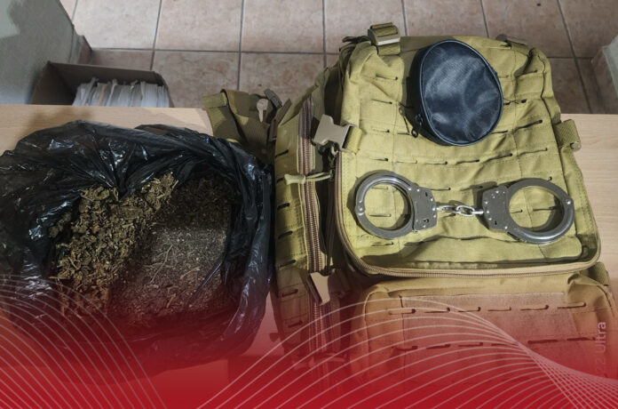 Al finalizar, le decomisaron una bolsa de color negro con hierba verde y seca con las características propias de la marihuana y un estuche que portaba unos candados de mano de uso policial.