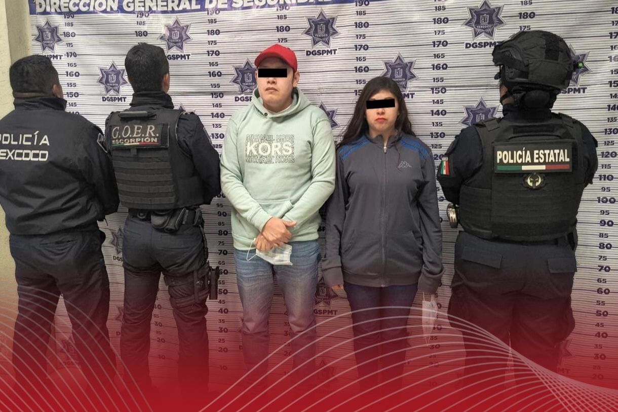 Un hombre y una mujer fueron detenidos como probables responsables de robo con violencia a transeúnte y portación de réplica de arma de fuego en Texcoco.