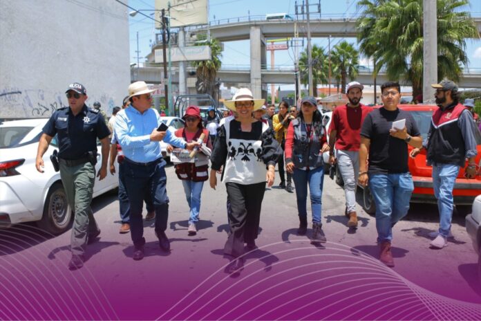 La presidenta municipal Azucena Cisneros encabezó un recorrido de supervisión por distintas zonas del municipio para constatar los avances de obras realizadas con recursos del ayuntamiento, enfocadas en mejorar vialidades y espacios públicos.
