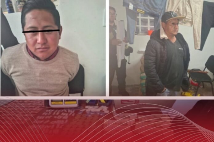 En el lugar fueron detenidos dos hombres de 45 y 47 años de edad, quienes fueron puestos a disposición de la autoridad competente.