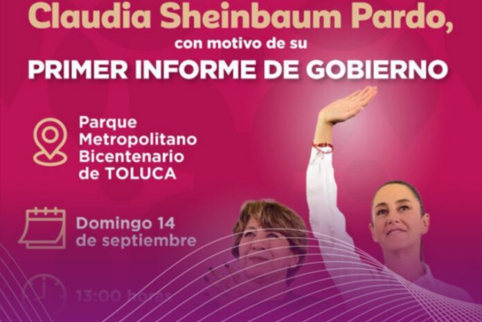 La presidenta Claudia Sheinbaum Pardo realizará uno de sus informes regionales en la capital del Estado de México. El evento está programado para este domingo 14 de septiembre a las 13:00 horas en el Parque Metropolitano Bicentenario de Toluca.