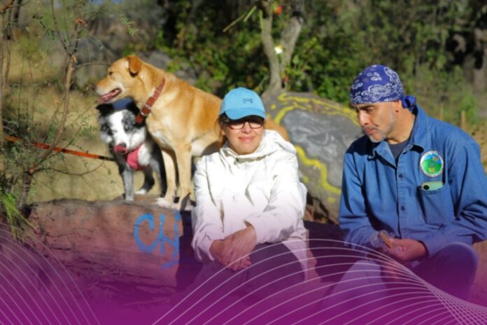 Acompañada de sus mascotas, Gala y Yune, Cisneros Coss conversó con miembros del colectivo ambiental, entre ellos Mario Godínez Ascencio, Adrián Camacho Zeferino y Ángel Jáquez Flores, presidente de la asociación civil. Con ellos compartió proyectos enfocados en la preservación de la sierra y su aprovechamiento sustentable.