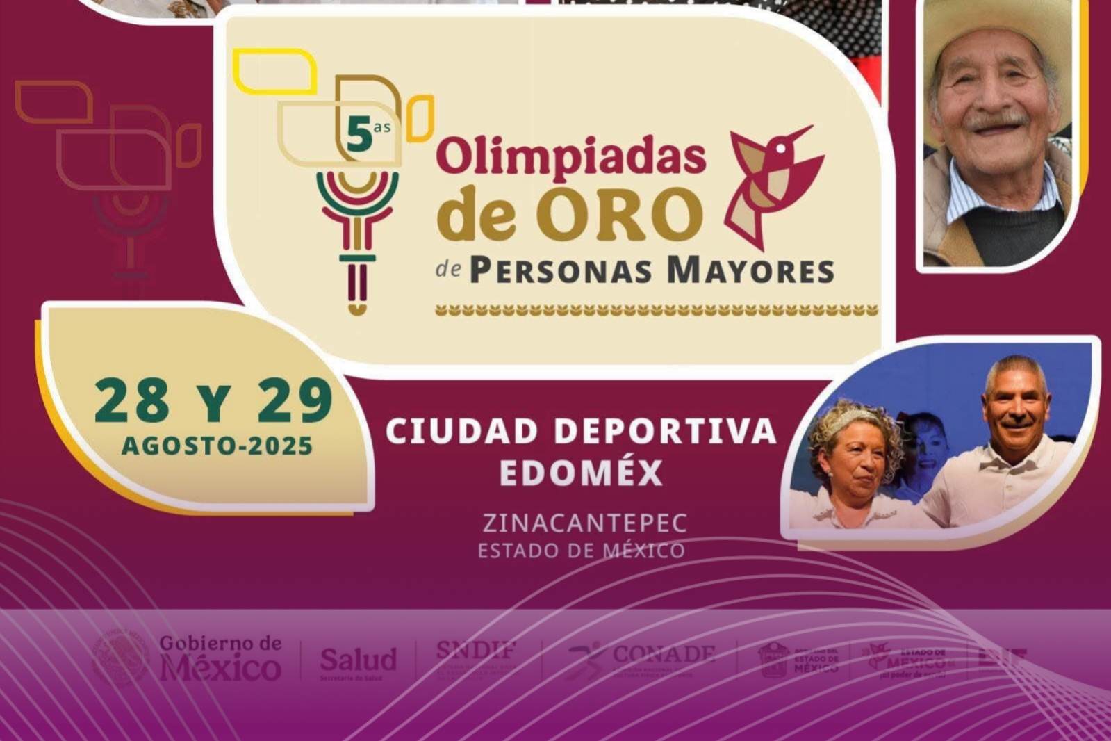La titular del Poder Ejecutivo del Estado de México, Delfina Gómez Álvarez dio a conocer que la entidad será sede de las 5as Olimpiadas de Oro, que se desarrollarán del 28 al 29 de agosto en la Ciudad Deportiva de Zinacantepec.