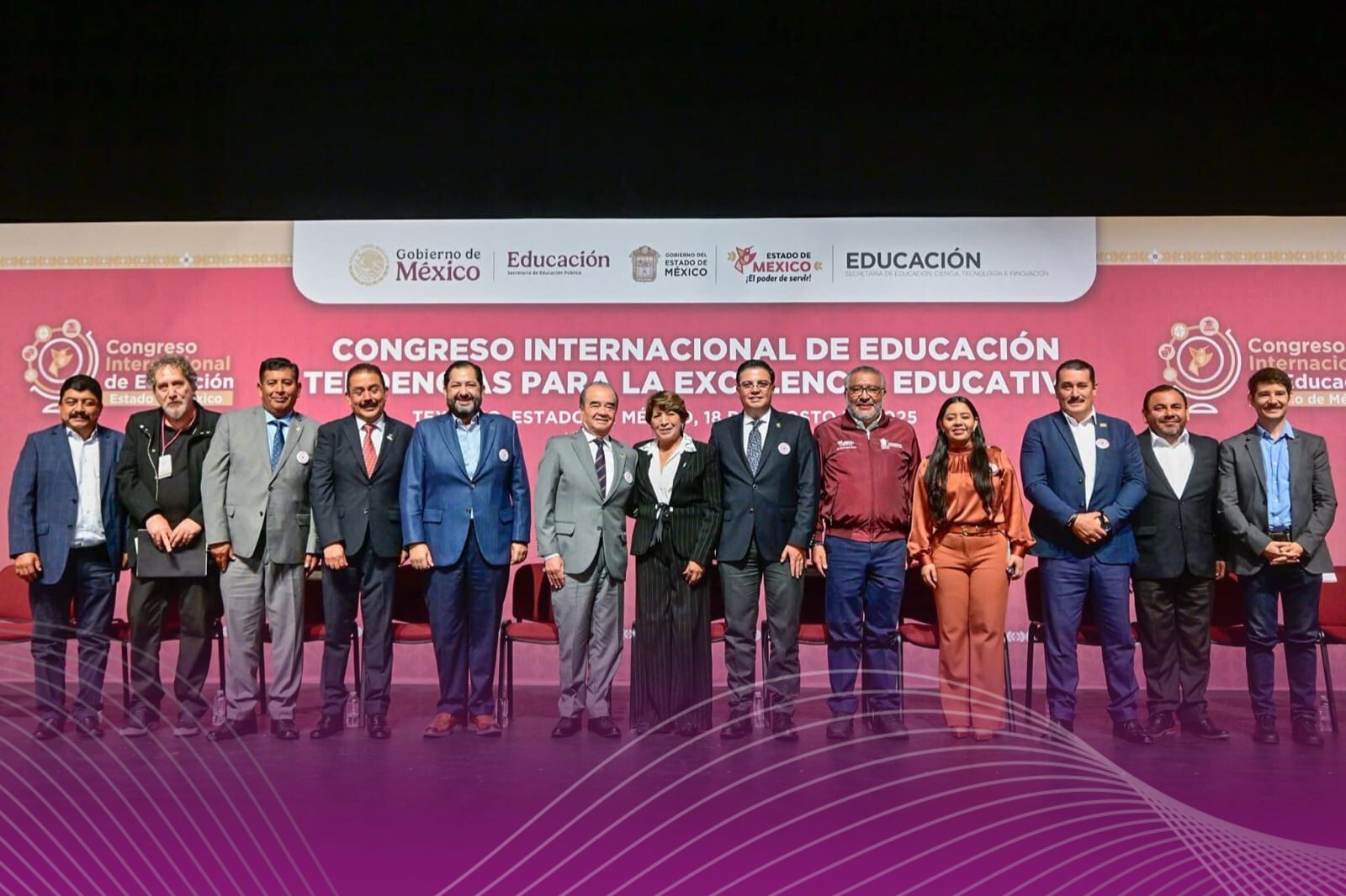 La gobernadora del Estado de México, Delfina Gómez Álvarez inauguró el Primer Congreso Internacional de Educación, Tendencias para la Excelencia Educativa, que se celebra de manera simultánea en Texcoco, Toluca y Tejupilco, con el objetivo de actualizar métodos pedagógicos y herramientas digitales en beneficio de niñas, niños y adolescentes.