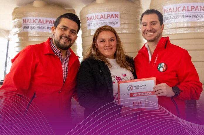 Elías Rescala, coordinador del Grupo Parlamentario del PRI, entregó 50 tinacos a familias de San Francisco Chimalpa, en Naucalpan, con el objetivo de mitigar la escasez de agua que enfrentan en sus colonias.