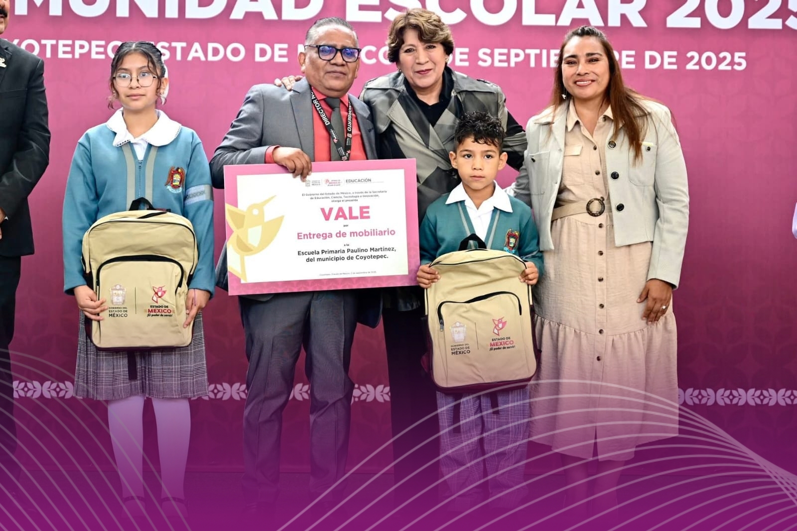 La gobernadora del Estado de México, Delfina Gómez Álvarez puso en marcha la Estrategia Integral para el Bienestar, ello en beneficio de la comunidad escolar 2025-2026, la cual contempla la entrega de útiles escolares, la entrega de equipamiento escolar, la puesta en marcha del Protocolo “Mochila de Paz y Prevención” y la implementación de “Nutri-Ideas”.