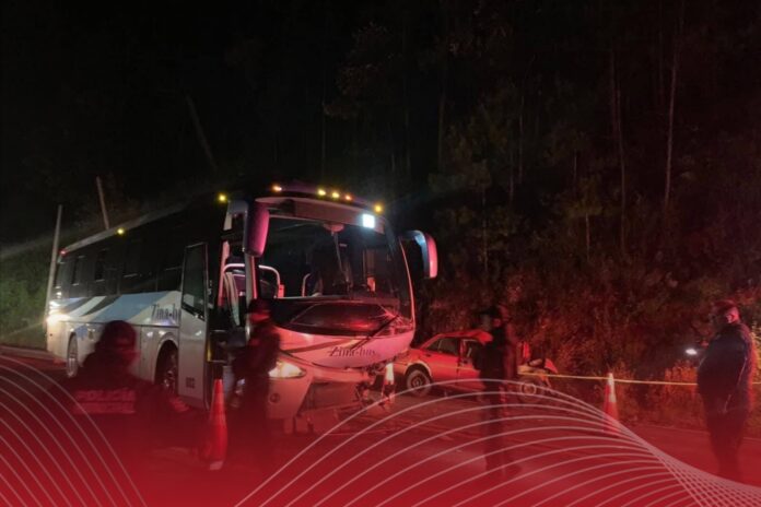 Fallece automovilista luego de impactarse contra autobús en Donato Guerra