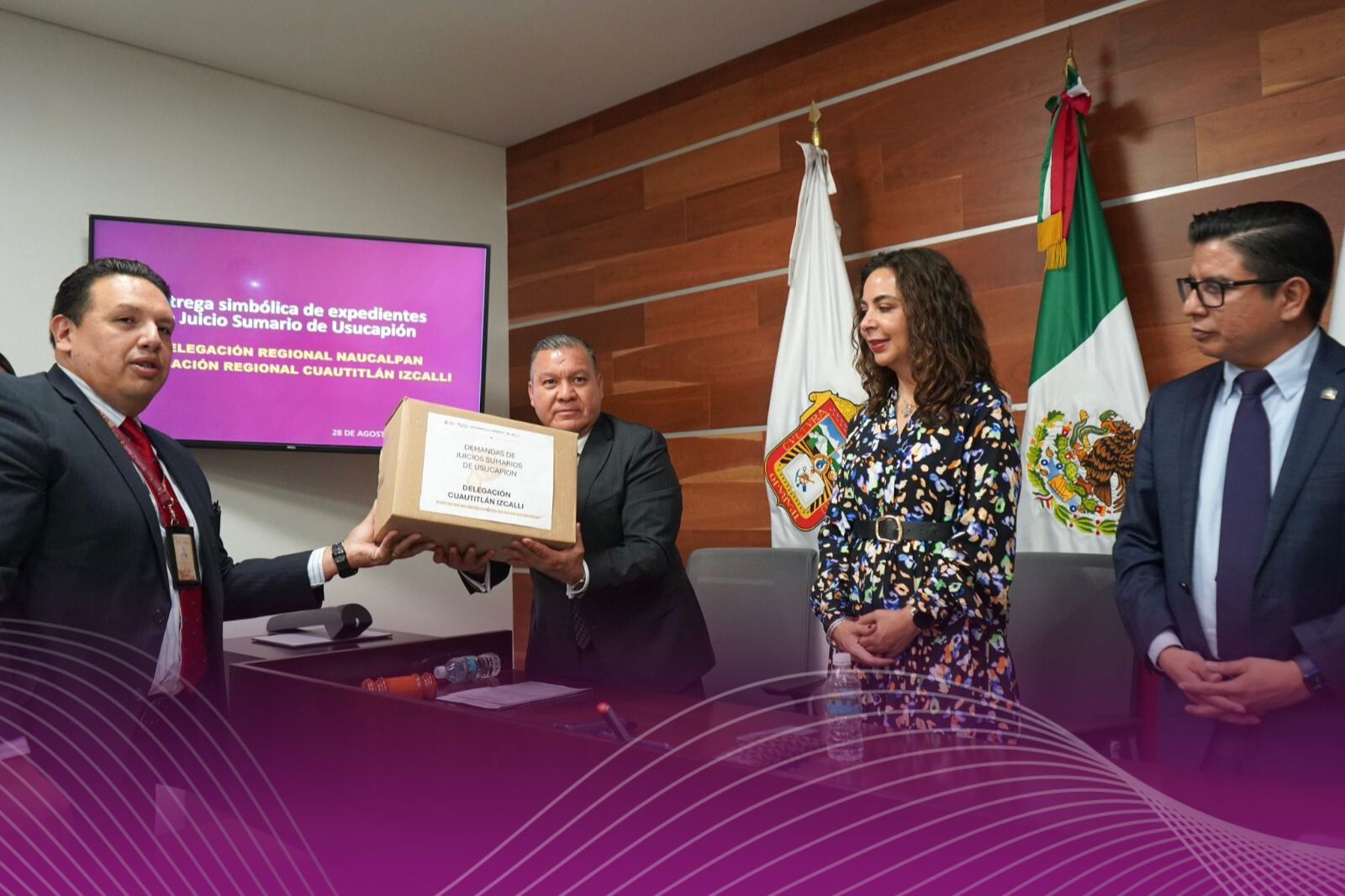 Los expedientes corresponden a procesos de regularización de predios provenientes de las Delegaciones Regionales de Naucalpan y Cuautitlán Izcalli, que serán tramitados judicialmente para avanzar en la formalización de la propiedad en distintos municipios del Valle de México.