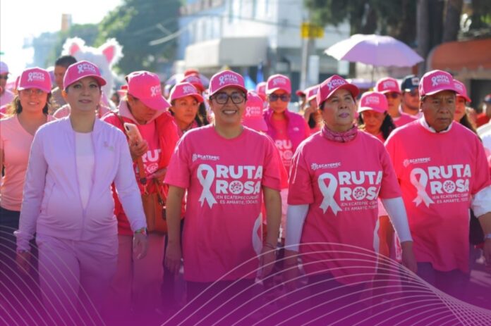 Más de tres mil mujeres y hombres participaron en la Caminata Estatal de Prevención del Cáncer de Mama en Ecatepec, encabezada por la presidenta municipal Azucena Cisneros Coss y la secretaria de Salud del Estado de México, Macarena Montoya Olvera. La actividad marcó el arranque de la Ruta Rosa, estrategia municipal para fomentar la detección oportuna y la prevención de esta enfermedad, principal causa de muerte entre los tumores malignos.
