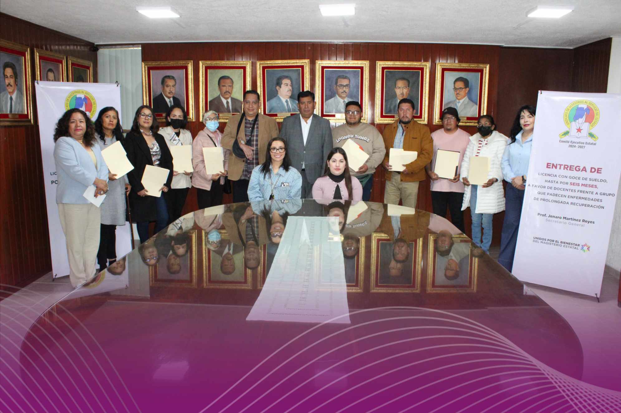 Toluca, Méx.- Trece docentes afiliados al Sindicato de Maestros al Servicio del Estado de México (SMSEM) fueron beneficiados con licencias médicas con goce de sueldo, en la séptima entrega de este tipo realizada por la actual dirigencia sindical. Este apoyo les permitirá enfocarse en su recuperación sin riesgo de perder su salario o sus derechos laborales.