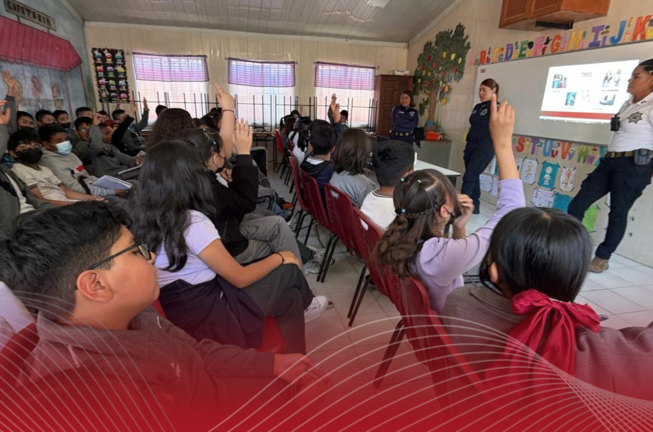 Elementos de Prevención del Delito acudieron recientemente a una primaria de la colonia Llano de los Báez, donde dialogaron con alumnas y alumnos de sexto grado acerca de la importancia de no normalizar la violencia dentro de la comunidad escolar.