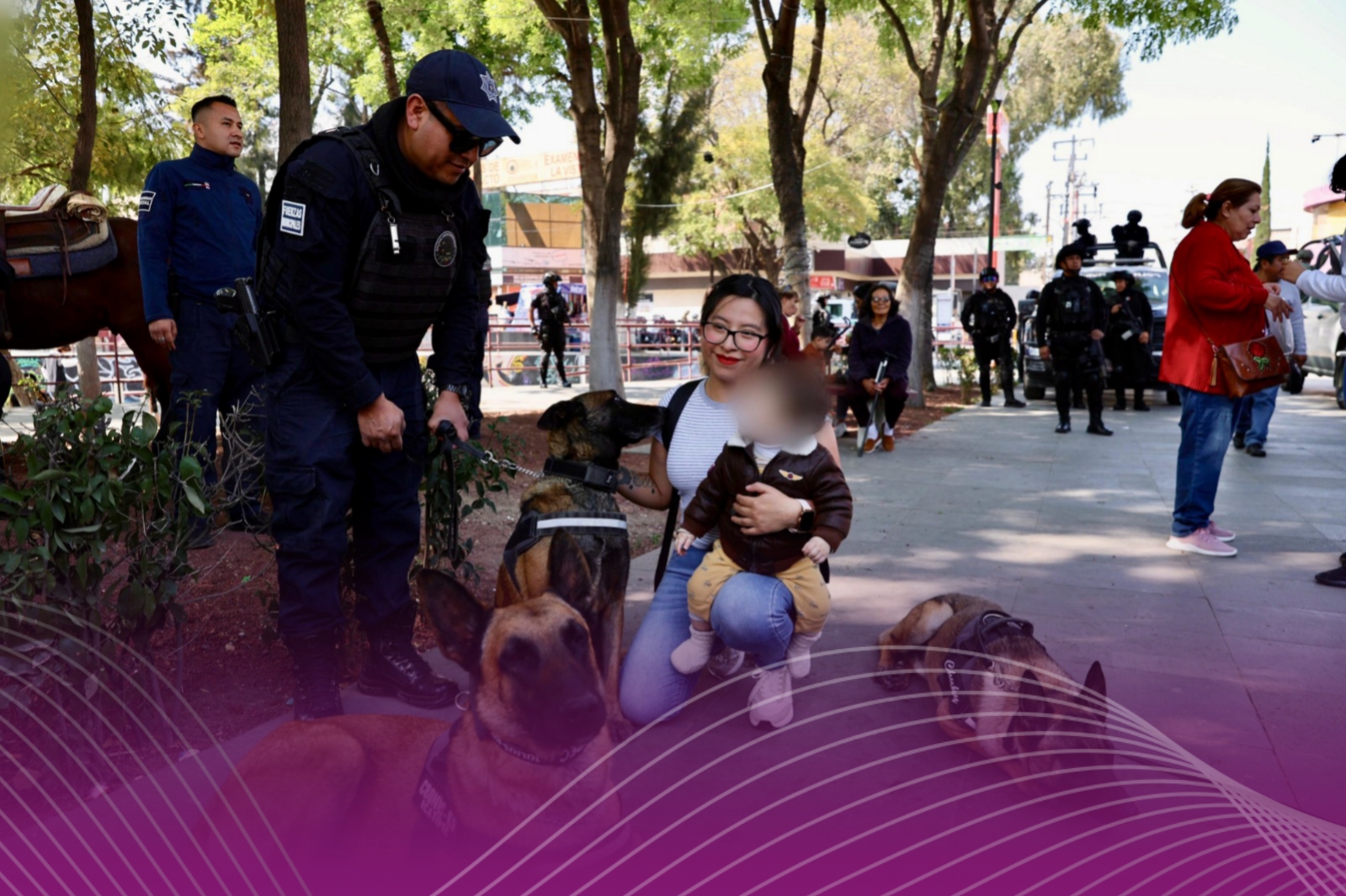 De igual forma, la Unidad Canina permitió la convivencia con los perros Chronos, Venus y Chucky, quienes fueron uno de los principales atractivos para niñas y niños que se acercaron a tomarse fotografías y conocer su labor dentro de la corporación.