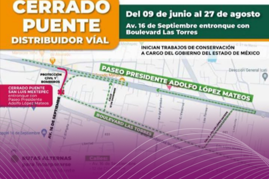 A través de un comunicado en redes sociales, la administración de Manuel Vilchis Viveros informó a la población que el cierre de la vialidad corresponde a labores de conservación y mantenimiento mayor, realizadas como parte del proyecto de PPS, impulsado por el gobierno del Estado de México.