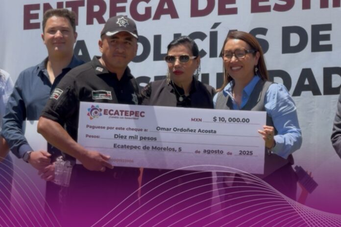 La presidenta municipal de Ecatepec, Azucena Cisneros Coss, entregó incentivos económicos a más de medio centenar de elementos de la policía local al ser los mejores evaluados.