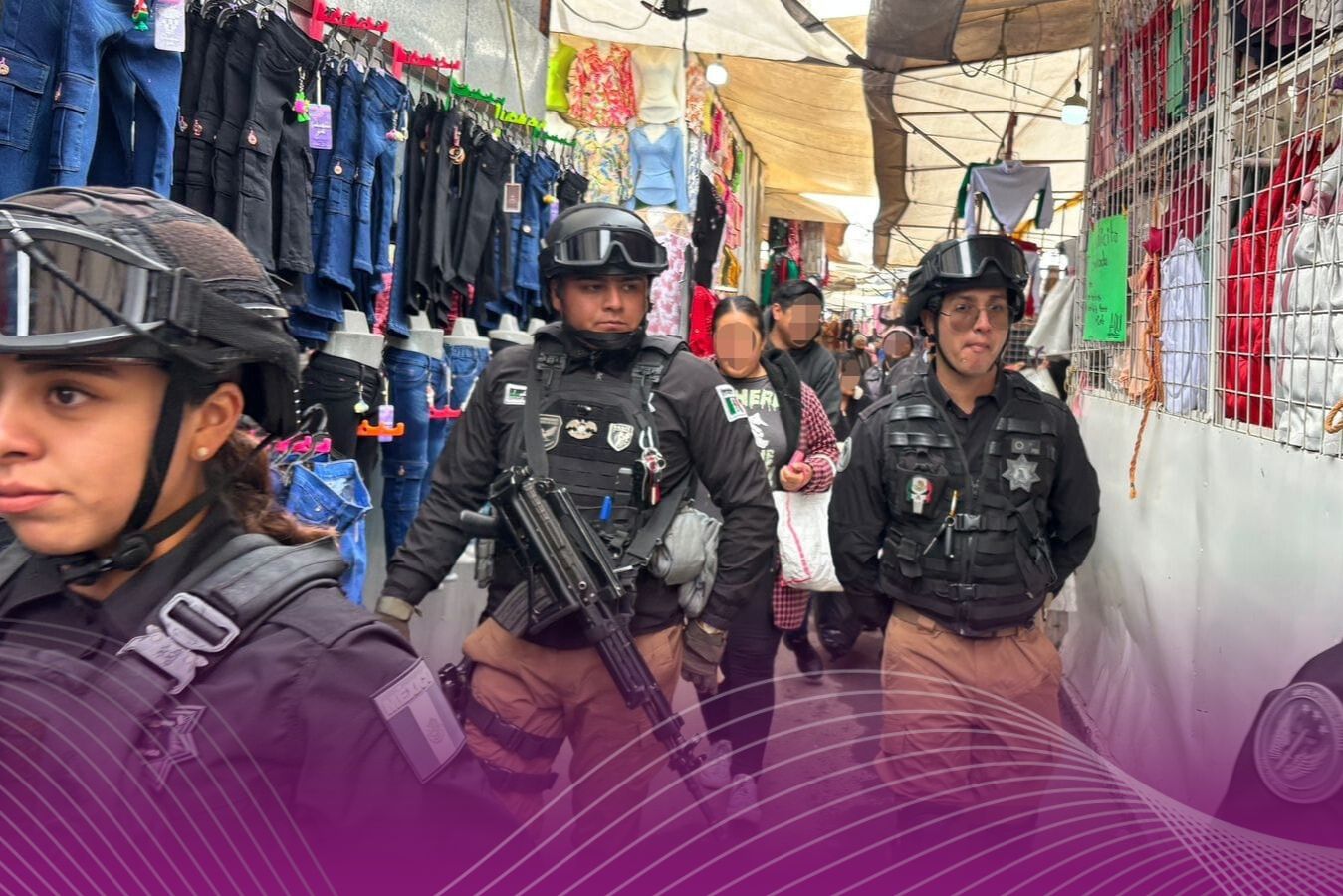 El dispositivo movilizó a 130 elementos de Policía de Proximidad, Grupos Tácticos y Unidades Especiales, además de binomios caninos y personal de la Policía Montada. Los recorridos abarcaron todo el interior del mercado, conocido también como Palmillas, que recibe más de 80 mil visitantes semanales y reúne a cerca de 16 mil comerciantes.