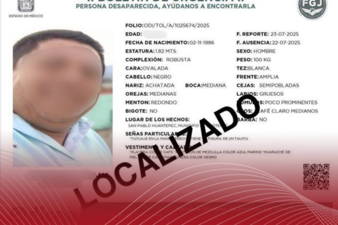 Bernardo Aldana, coordinador del sindicato ACME en Jilotepec, fue localizado con vida durante la madrugada del miércoles 24 de julio en el municipio de Soyaniquilpan, Estado de México. La noticia fue confirmada por la Secretaría de Seguridad estatal, que informó sobre el desarrollo de un operativo para su búsqueda y rescate.