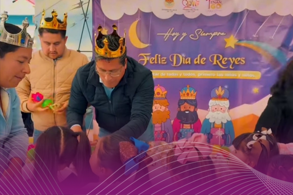 Tenango del Valle, Méx. – La presidenta honoraria del Sistema Municipal DIF de Tenango del Valle, Nallely Zotea Álvarez, encabezó la jornada de entrega de juguetes con motivo del Día de Reyes Magos, como parte de una ruta organizada en coordinación con el Ayuntamiento municipal. Las actividades se realizaron en representación del presidente municipal, Roberto Bautista Arellano, y contaron con la participación de personal del DIF y autoridades locales.