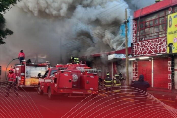 Elementos de la Dirección General de Seguridad y Protección de Toluca, en coordinación con el Cuerpo de Bomberos municipal, atendieron un incendio registrado durante la madrugada en un establecimiento comercial de la colonia Valle Verde.