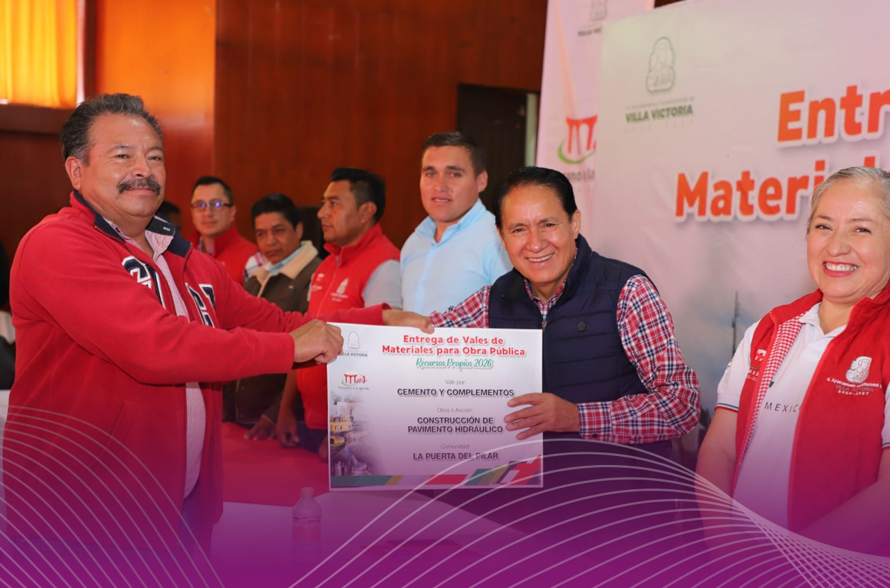 El gobierno municipal de Villa Victoria realizó la entrega de materiales de construcción para fortalecer obras comunitarias en distintas localidades, como parte de una estrategia para mejorar la infraestructura básica y la calidad de vida de la población.