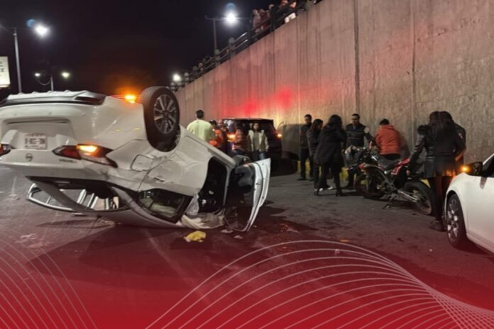Sin embargo, uno de ellos tipo Versa de color blanco quedó con las llantas hacia arriba, luego de que un March pegó primero contra el muro de contención.