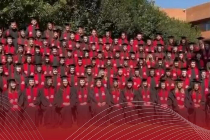 De acuerdo con información difundida por la institución, en el lugar se encontraban alrededor de 150 estudiantes y personas acompañantes de la generación 2022-2026 cuando ocurrió el accidente, el cual quedó registrado en video.