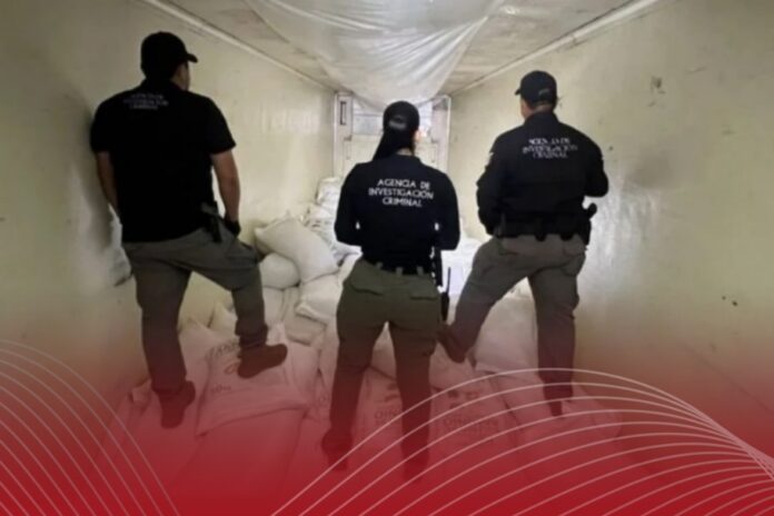 De acuerdo con el reporte oficial, en el operativo participaron elementos de la Agencia de Investigación Criminal de la Fiscalía General de la República y personal del Gabinete de Seguridad. Imágenes difundidas muestran el área de carga del camión, donde se aprecia el acomodo de los costales utilizados para cubrir la metanfetamina.