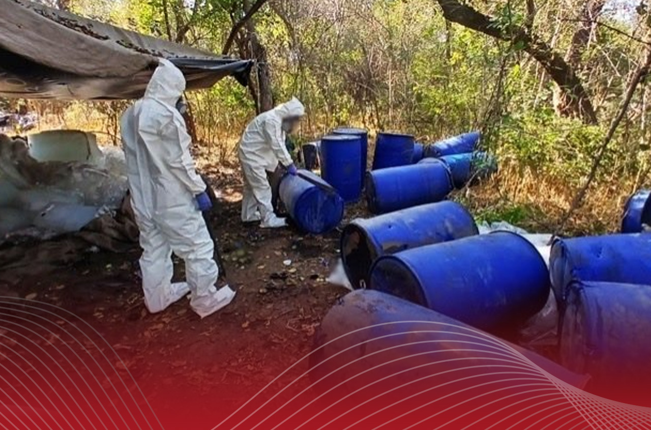 Durante los operativos, se localizó un laboratorio clandestino en Culiacán que contenía más de 3 mil 400 litros y una tonelada de precursores químicos empleados en la producción de narcóticos. En otro punto, en el municipio de Cosalá, fue destruida un área de concentración que albergaba mil 550 litros y 275 kilos de sustancias químicas.