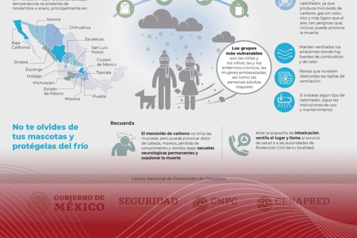El Gobierno de México, a través de la Coordinación Nacional de Protección Civil (CNPC) de la Secretaría de Seguridad y Protección Ciudadana, exhortó a la población a mantener medidas de autoprotección ante las lluvias intensas y la llegada de un nuevo frente frío que afectará diversas regiones del país durante los próximos días.
