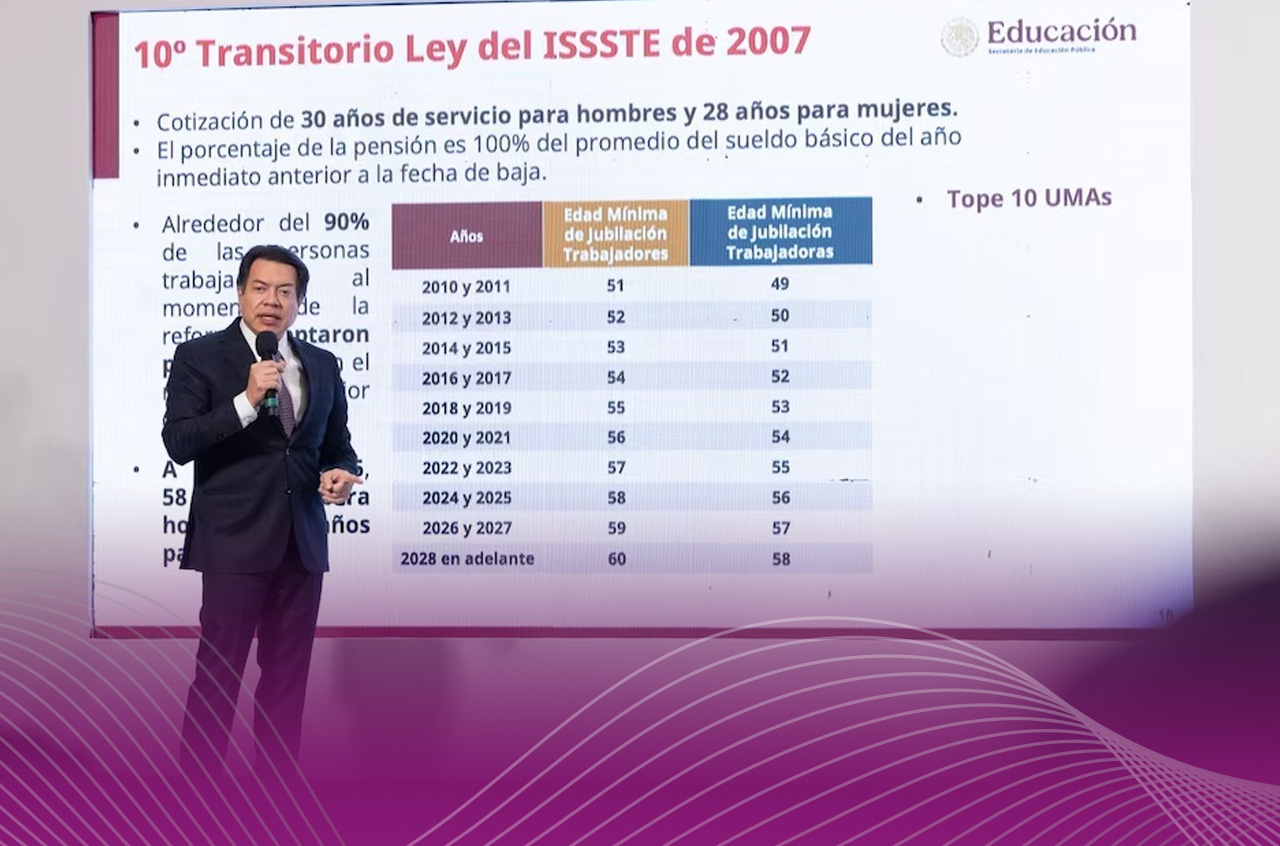 El Gobierno Federal realizó una modificación en la ley del Instituto de Seguridad y Servicios Sociales de los Trabajadores del Estado (ISSSTE) que regula la edad mínima para jubilarse, frenando el aumento progresivo establecido en la norma de 2007. Esta reforma beneficiará a un gran número de empleados estatales, incluyendo al personal docente.