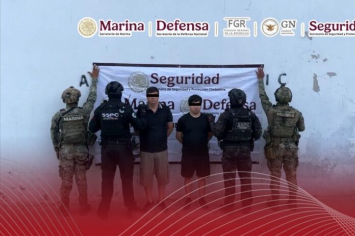 Elementos de la Secretaría de Marina-Armada de México detuvieron en Mazatlán, Sinaloa, a Efraín Díaz Martínez y Jesús Miguel Aispuro Figueroa, señalados como presuntos integrantes de la estructura de Los Chapitos.