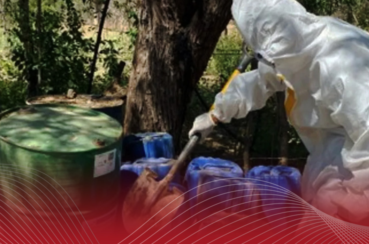 En una serie de operativos realizados por elementos del Ejército mexicano, fueron desactivadas cuatro áreas empleadas para la elaboración de metanfetamina en distintos puntos del municipio de Culiacán. En estas acciones se aseguraron mil 470 litros de sustancias químicas y materiales diversos utilizados en la producción de drogas sintéticas. El valor estimado de lo decomisado asciende a 31 millones de pesos.