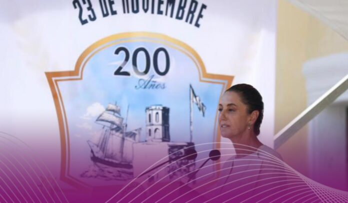 Durante la ceremonia realizada en el Fuerte de San Juan de Ulúa, en Veracruz, la mandataria señaló que “no triunfa quien convoca a la violencia como instrumento de presión, o quien cree que unas cuantas personas callan la alegría de un pueblo”, así como que “no triunfa quien busca apoyo extranjero cuando no tiene apoyo interno, pero siempre el pueblo de México debe estar alerta para defender la justicia y cualquier intento de injerencia externa apoyada, sí, por los conservadores”.