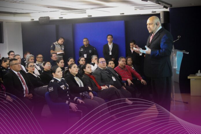 La Secretaría de Seguridad y Protección Ciudadana (SSPC) fortaleció la preparación de su personal a través del Servicio de Protección Federal (SPF) con la impartición de la conferencia “Combate a la delincuencia organizada en México”, encabezada por Sergio Suárez Daza, secretario general académico del Instituto Nacional de Ciencias Penales (INACIPE).