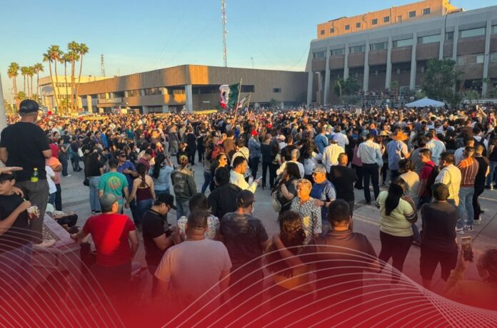 La Plaza de los Tres Poderes, ubicada en el corazón del centro cívico de Mexicali, fue escenario de una manifestación ciudadana convocada bajo el lema “Carne asada masiva en contra de Marina del Pilar”. La protesta reunió a decenas de personas que expresaron su descontento con la gestión de la gobernadora de Baja California, Marina del Pilar Ávila Olmeda.